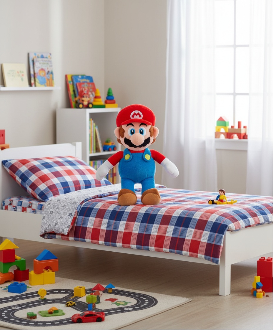 Måske tænker du: “Er den ikke alt for stor til et børneværelse?”. Det er en god tanke. Plads er vigtigt. Men netop størrelsen er det der gør denne gave så speciel. Den fylder måske lidt, men den giver så meget tilbage i form af glæde, komfort og et unikt blikfang. Den kan placeres i et hjørne, ved sengen eller endda på en større stol. Tænk på den som et møbel med personlighed, der tilføjer varme og karakter til rummet. Udover at være en fantastisk gave i sig selv, passer denne bamse perfekt ind i en verden af Super Mario merchandise. Forestil dig at kombinere den med Super Mario sengetøj, opbevaringskasser med motiver fra spillet, eller måske endda små action figurer der kan ‘bo’ omkring den store bamse. Det skaber et gennemført tema på værelset, som mange børn vil elske.