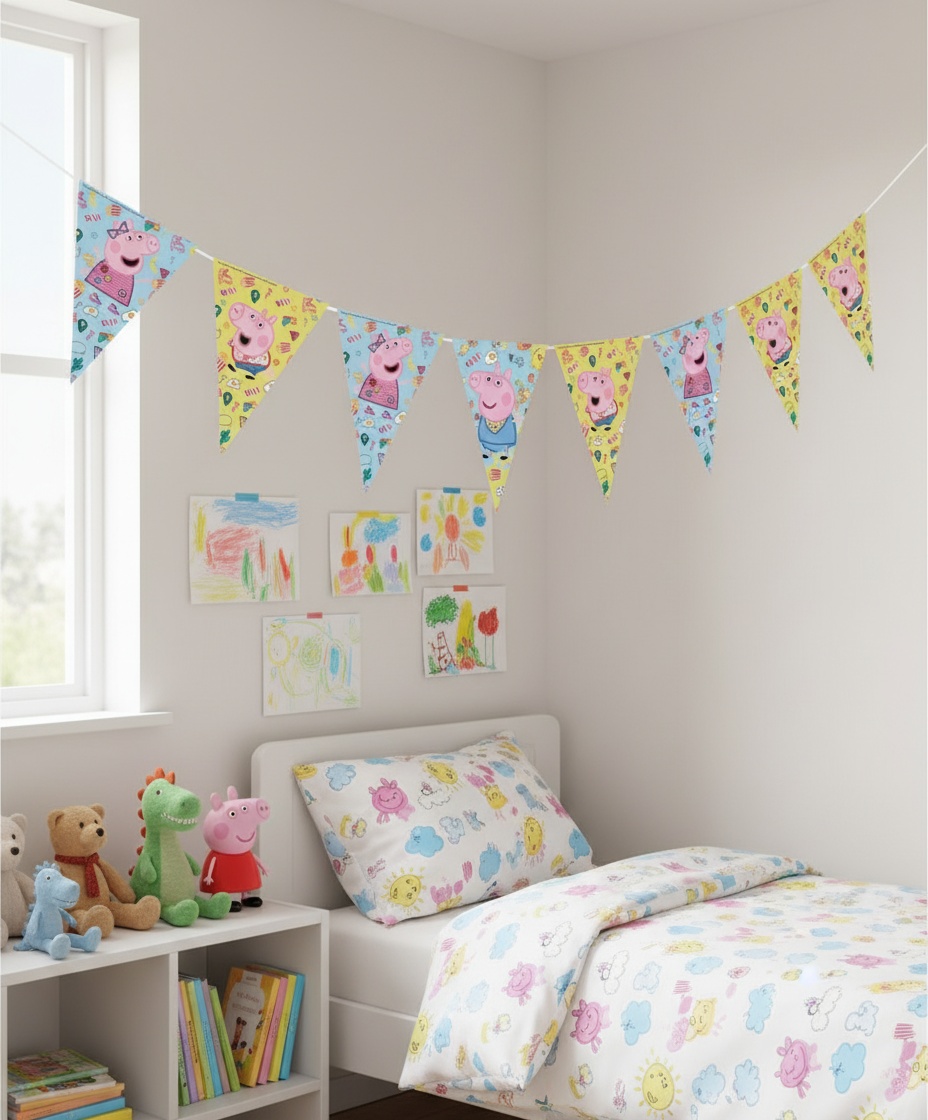 Med denne guirlande kan du hurtigt og nemt forvandle dit hjem til en festlig oase, som børnene vil huske længe. De farverige flag med billeder af Gurli Gris vil helt sikkert bringe smil på alles læber og gøre festen ekstra speciel. Kombiner guirlanden med andet fødselsdagspynt for at skabe en fuldendt og magisk fødselsdagsoplevelse.