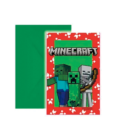 Kortene er designet med et farverigt Minecraft motiv, der viser populære mobs som en zombie, en Creeper og et skelet. De ikoniske pixel grafik og den grønne farvepalet er genkendelig for enhver Minecraft fan. Du får seks invitationskort og seks matchende kuverter i pakken, så du er klar til at invitere alle dine gæster til en episk fest.