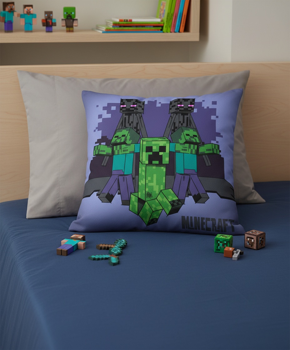 Minecraft merchandise er altid et hit blandt børn, og denne pude er ingen undtagelse. Den kombinerer komfort, stil og funktionalitet på en måde, der vil glæde både børn og forældre. Gør dit barns dag lidt lysere med denne fantastiske Minecraft pude.