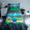 Minecraft Adventure-sengesættet er fremstillet af 100% bomuld og indeholder et dynebetræk og et pudebetræk, der begge kan vaskes i maskine. Dynebetrækket måler 140×200 cm, og pudebetrækket måler 70×90 cm. Licenseret af: Minecraft.