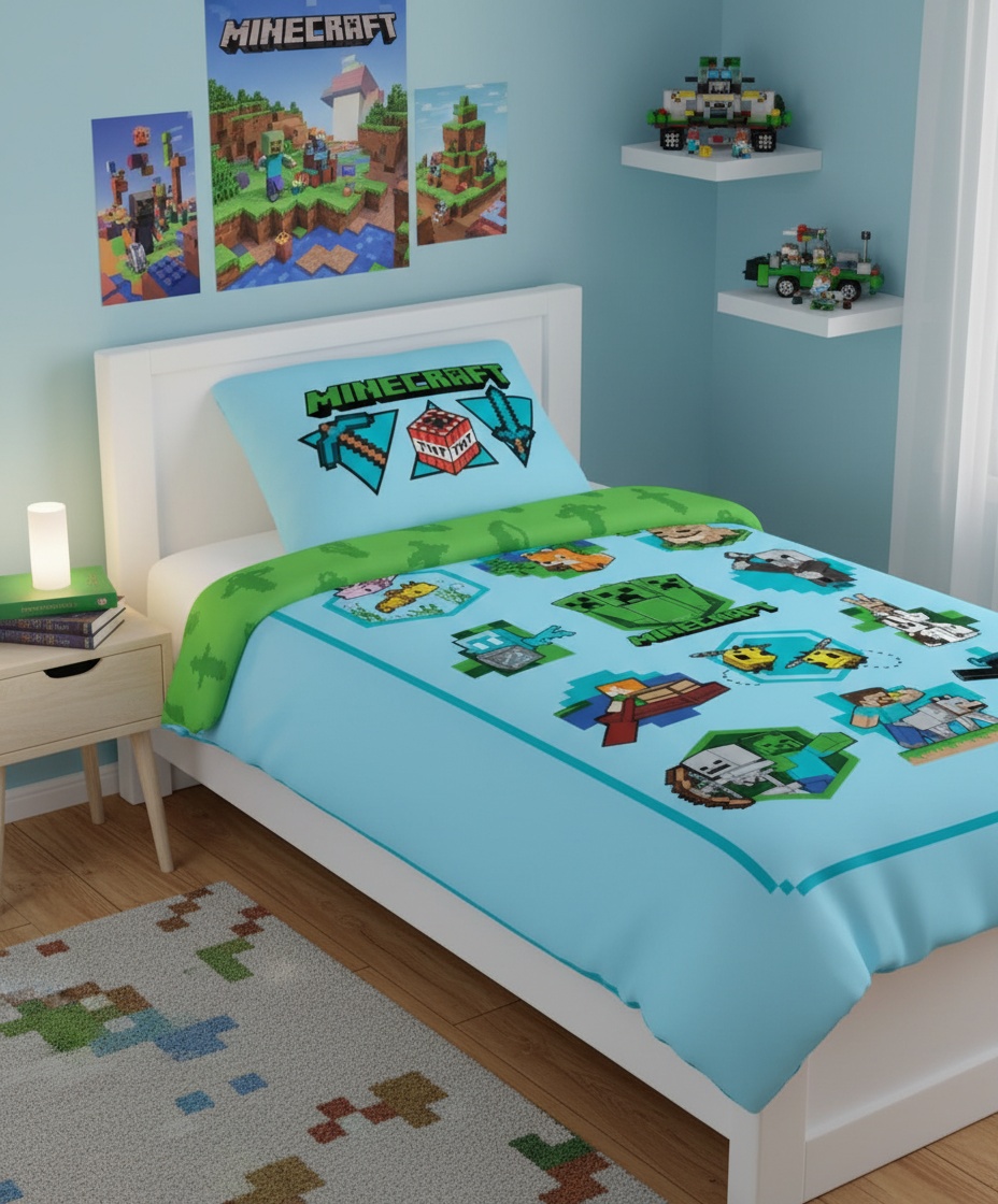 Minecraft er et af de mest populære spil blandt børn og unge, og det er ikke svært at forstå hvorfor. Spillet giver mulighed for at bygge og udforske uendelige verdener, hvilket stimulerer kreativiteten og fantasien. Med dette Minecraft sengetøj kan dit barn tage en del af denne magiske verden med sig ind i drømmeland.
