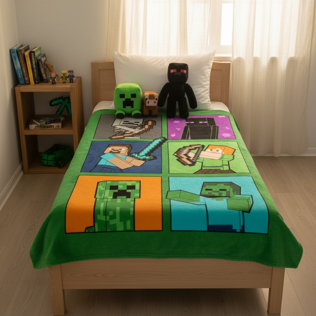 Vi præsenterer Minecraft-tæppet! Dette hyggelige og farverige tæppe er perfekt til enhver fan af det populære spil. Med en størrelse på 100×150 cm er det stort nok til at holde dig varm på kølige nætter eller gøre det til en fantastisk tilføjelse til dit sengetøj. Det er lavet af 100% polar fleece og er blødt og behageligt at krybe sammen med. Og selvfølgelig er den udstyret med alles yndlings Minecraft-figurer: Creeper, Steve, Pig, Sheep, Alex og Wolf. Uanset om du hygger dig derhjemme eller tager det med på campingturen, vil Minecraft-tæppet helt sikkert få et smil frem på læben.