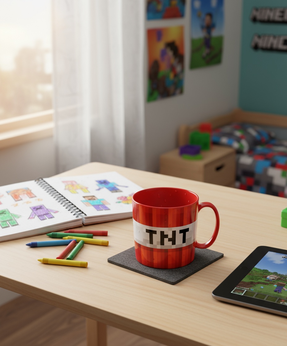 Måske tænker du: “Er det bare endnu et plastikkrus, der ender bagerst i skabet?” Slet ikke. Fordi dette krus er en del af en verden, dit barn elsker, bliver det hurtigt til mere end bare en kop. Det bliver et trofæ, en del af legen og en fast følgesvend. Det er den slags små gaver, der skaber stor glæde i hverdagen og viser, at du forstår dit barns interesser. Det kan endda opmuntre til at drikke mere, fordi det simpelthen er sjovere fra et TNT krus. Forestil dig det på børneværelset ved siden af opbevaringskasser fyldt med klodser eller på skrivebordet som en sej blyantholder. Det er en lille ting, der nemt kan blive en stor del af barnets personlige samling af Minecraft sengetøj og dekoration.