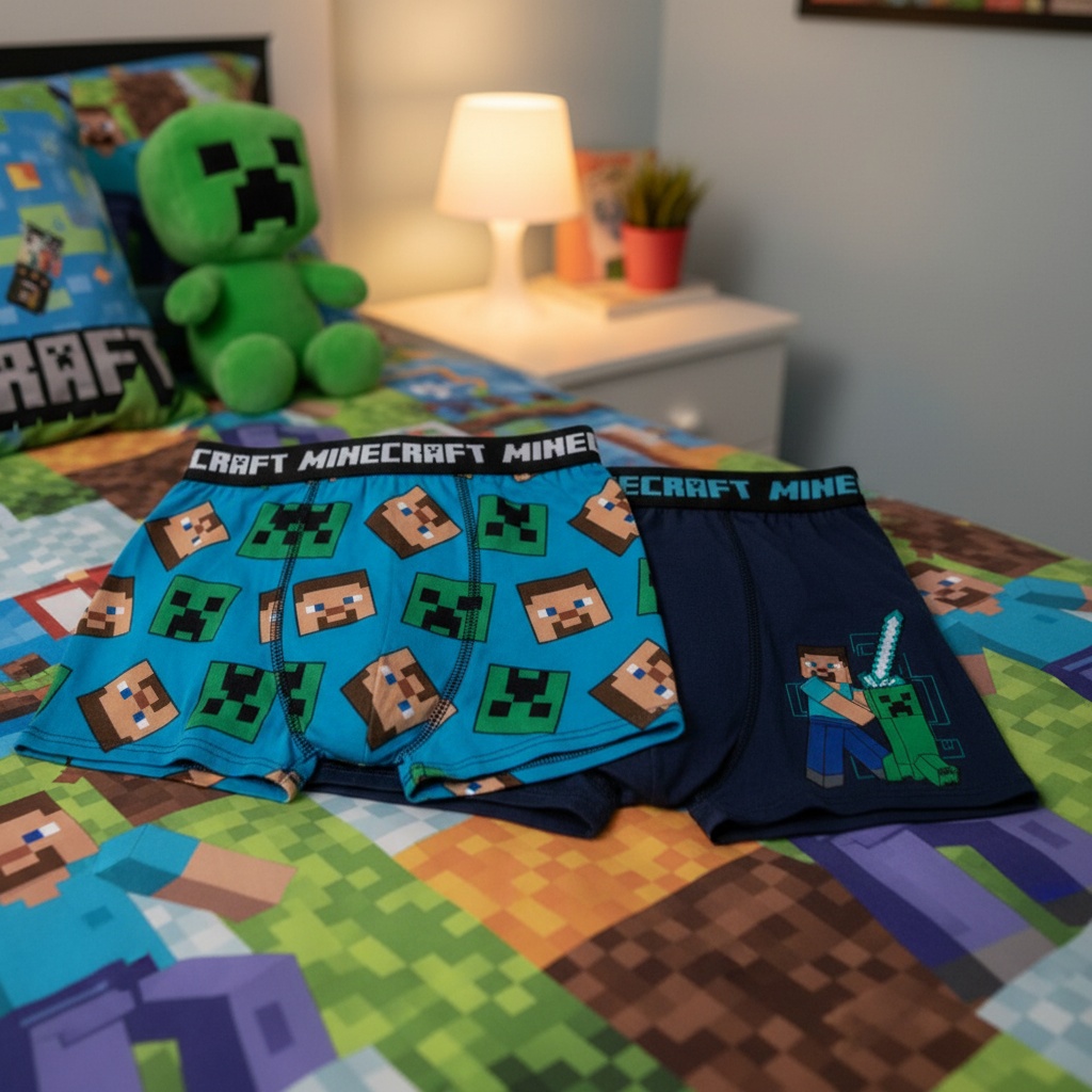 Leder du efter en sjov og unik gave til den Minecraft-fan i dit liv? Disse officielt licenserede Minecraft boxershorts er det perfekte valg! Med Creeper-, Steve- og Alex-grafik vil de helt sikkert bringe et smil frem på enhver ung Minecrafters ansigt. De er fremstillet af en blød og behagelig blanding af 5% elastik og 95% bomuld og vil helt sikkert blive et hit hos børn i alderen 6-12 år. Så hvorfor ikke gøre deres dag med et par af disse sjove Minecraft boxershorts?