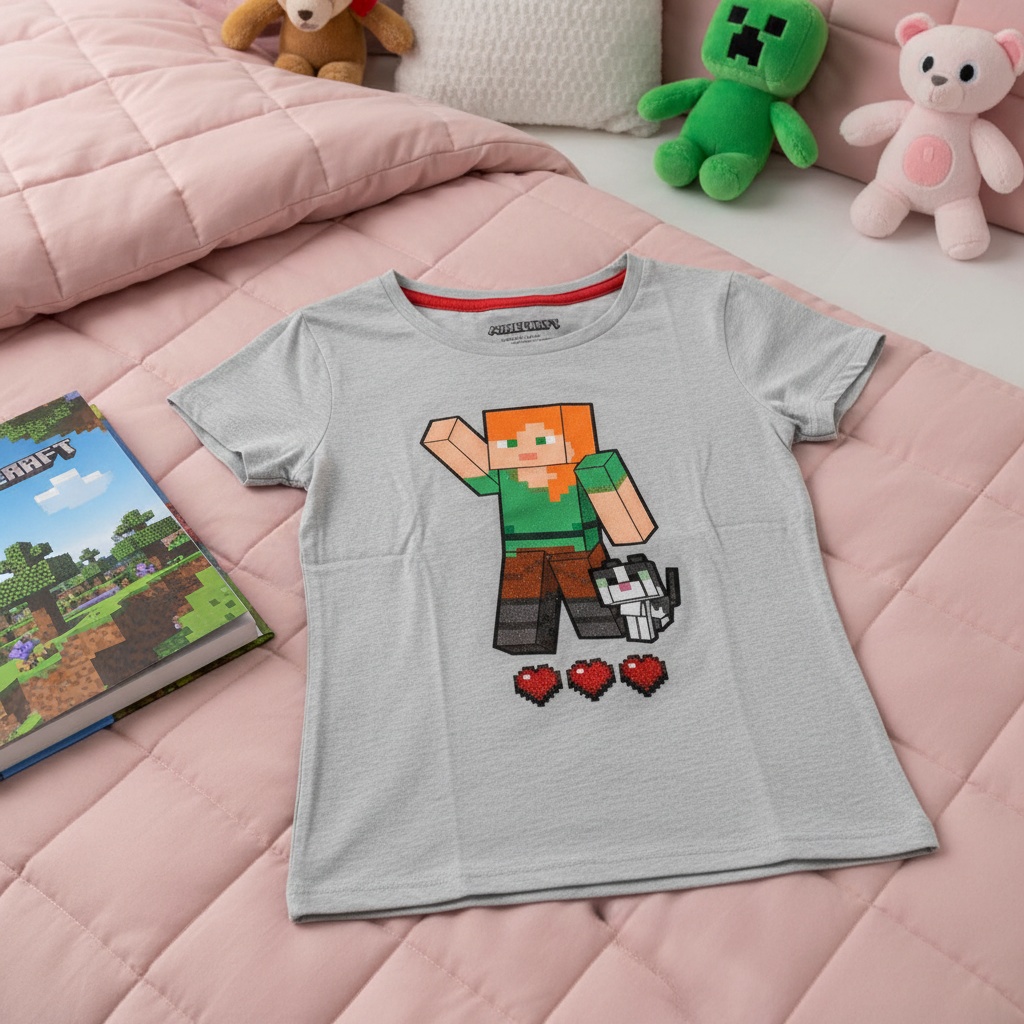 Din lille pige vil elske denne grå Minecraft t-shirt! Den er perfekt til at skabe minder og lege på forskellige måder. Den er lavet af bomuld for en blød og behagelig følelse, og den har glitter for et sjovt touch. Desuden er den officielt licenseret af Minecraft. Bestil din i dag!