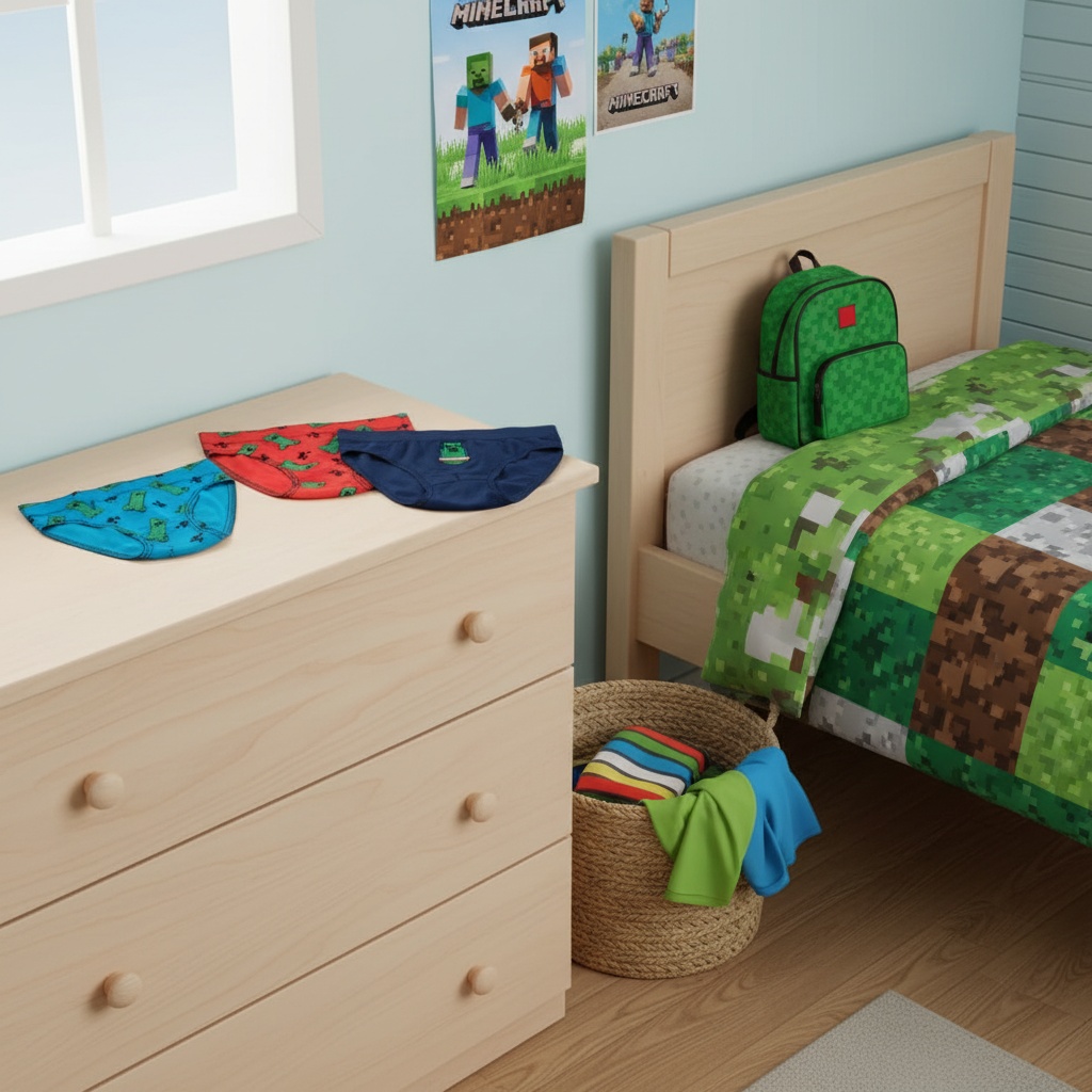 Minecraft-underbukser er den perfekte måde at holde din lille gamer komfortabel og stilfuld på. De er lavet af 100 % bomuld, er bløde, åndbare og kan vaskes i maskinen. Med figurer fra det populære spil Minecraft vil disse underbukser få dit barn til at føle sig som en rigtig del af spillet. Med en tre-pakke har du masser af underbukser til rådighed til de dage, hvor der bare er for meget Minecraft-arbejde, der skal gøres. Bestil nu, og lad dit barn nyde komforten og stilen i Minecraft-underbukser.