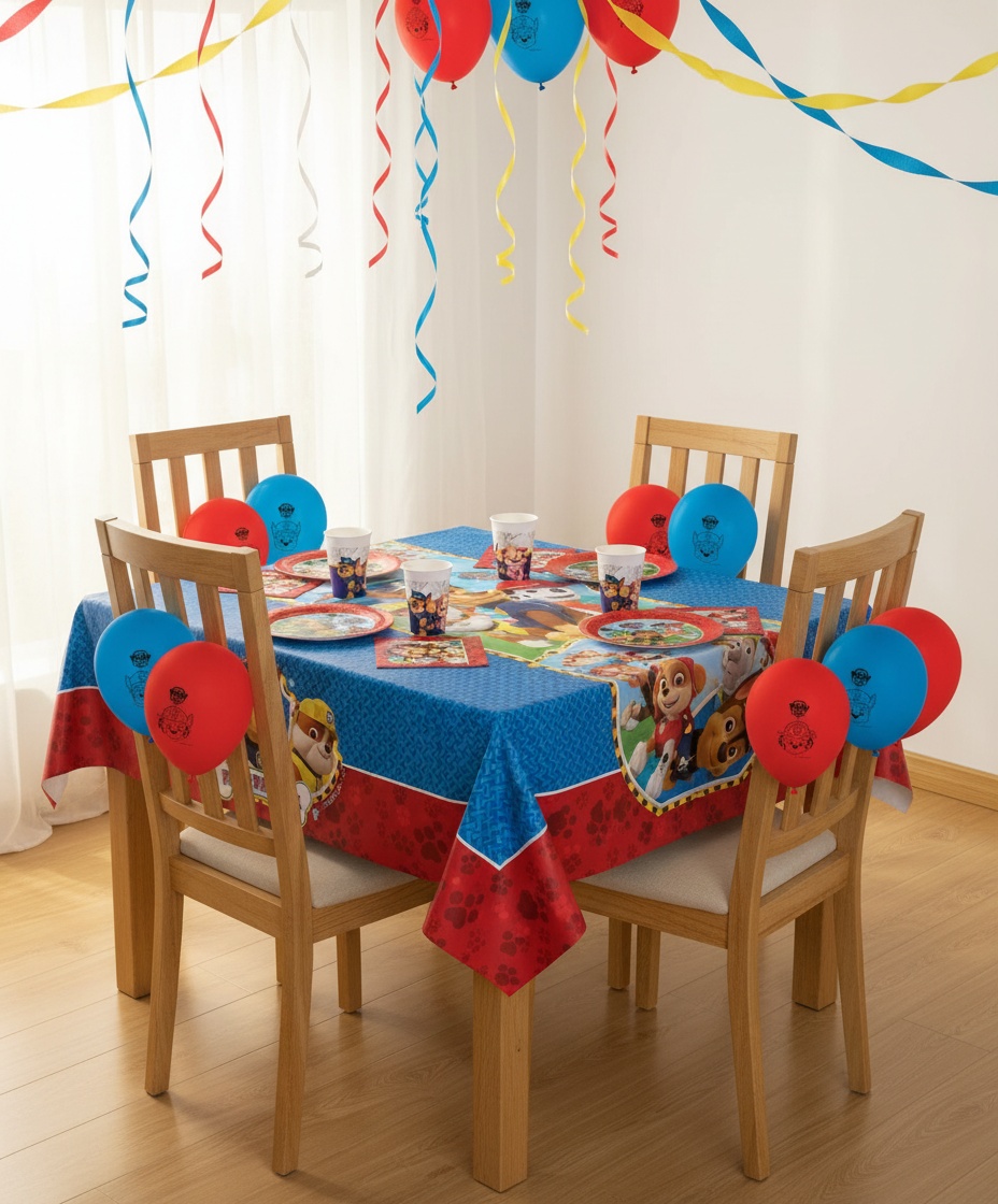 Denne Paw Patrol fest-pakke har alt, hvad du behøver for at få festen i gang. Pakken indeholder 8 paptallerkner, 8 papkrus, 20 servietter og 8 balloner – alle dekoreret med de populære karakterer fra Paw Patrol. Derudover får du en flot borddug på 120 x 180 cm, der fuldender borddækningen med de kendte ansigter fra dit barns yndlingsserie. Alle elementerne matcher hinanden og skaber en gennemført Paw Patrol-tema fest, som vil imponere både fødselaren og gæsterne.
