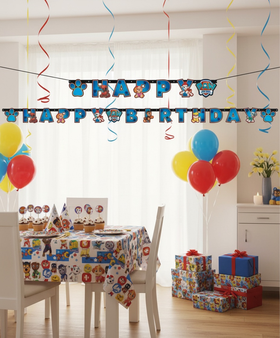 Ingen fødselsdag er komplet uden den rigtige pynt. Vores Paw Patrol fødselsdagsbanner hjælper med at sætte scenen for en dag fyldt med leg og latter. De farverige og livlige design vil få børnene til at føle sig som en del af Paw Patrol-holdet, hvilket gør festen endnu mere speciel. Når gæsterne ankommer og ser banneret, vil de straks blive fanget af den festlige stemning.