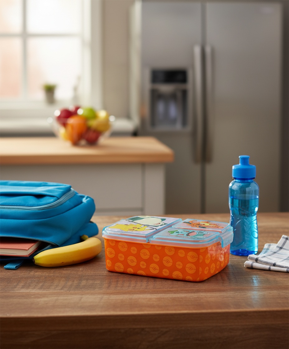 Dette er en madkasse, der med sine tre rum giver dit barn mulighed for at sortere maden efter lyst og behag, samtidig med at de elskede Pokemon karakterer, som Pikachu, Bulbasaur og Squirtle, tilføjer en dosis sjov til måltidet. Lavet af holdbart plastik, sikrer denne madkasse, at både snacks og sandwiches forbliver friske og klar til at nydes.