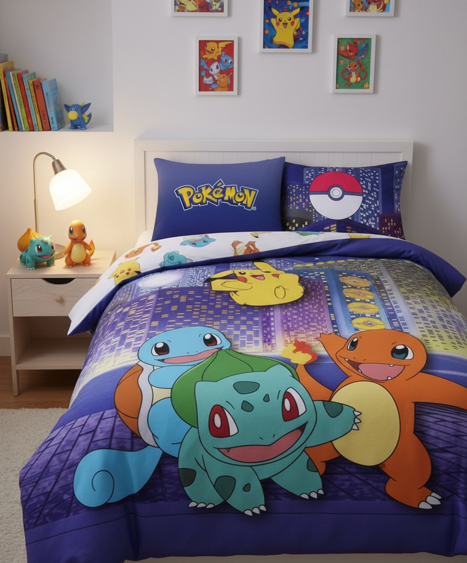 Er du på jagt efter den perfekte fødselsdagsgave til en lille Pokémon-træner? Så kig her! Dette Pokemon sengetøj – Starter blå – 140x200cm er ikke bare sengetøj. Det er en invitation til eventyr i drømmeland sammen med de allerførste Pokémon-venner. Forestil dig glæden, når dit barn pakker gaven op og ser dette farvestrålende sengesæt.