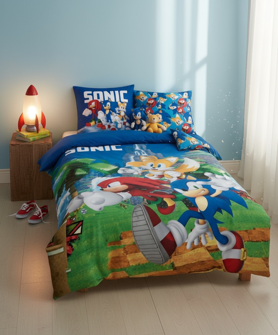 Med Sonic sengetøjet kan dit barn tage Sonic eventyret med sig, selv når det er tid til at gå i seng. Hver aften bliver en invitation til eventyr, når dit barn kan falde i søvn med deres favorit Sonic karakterer. Det er ikke bare et stykke sengetøj – det er en daglig påmindelse om det sjove og spændende univers, som de elsker.