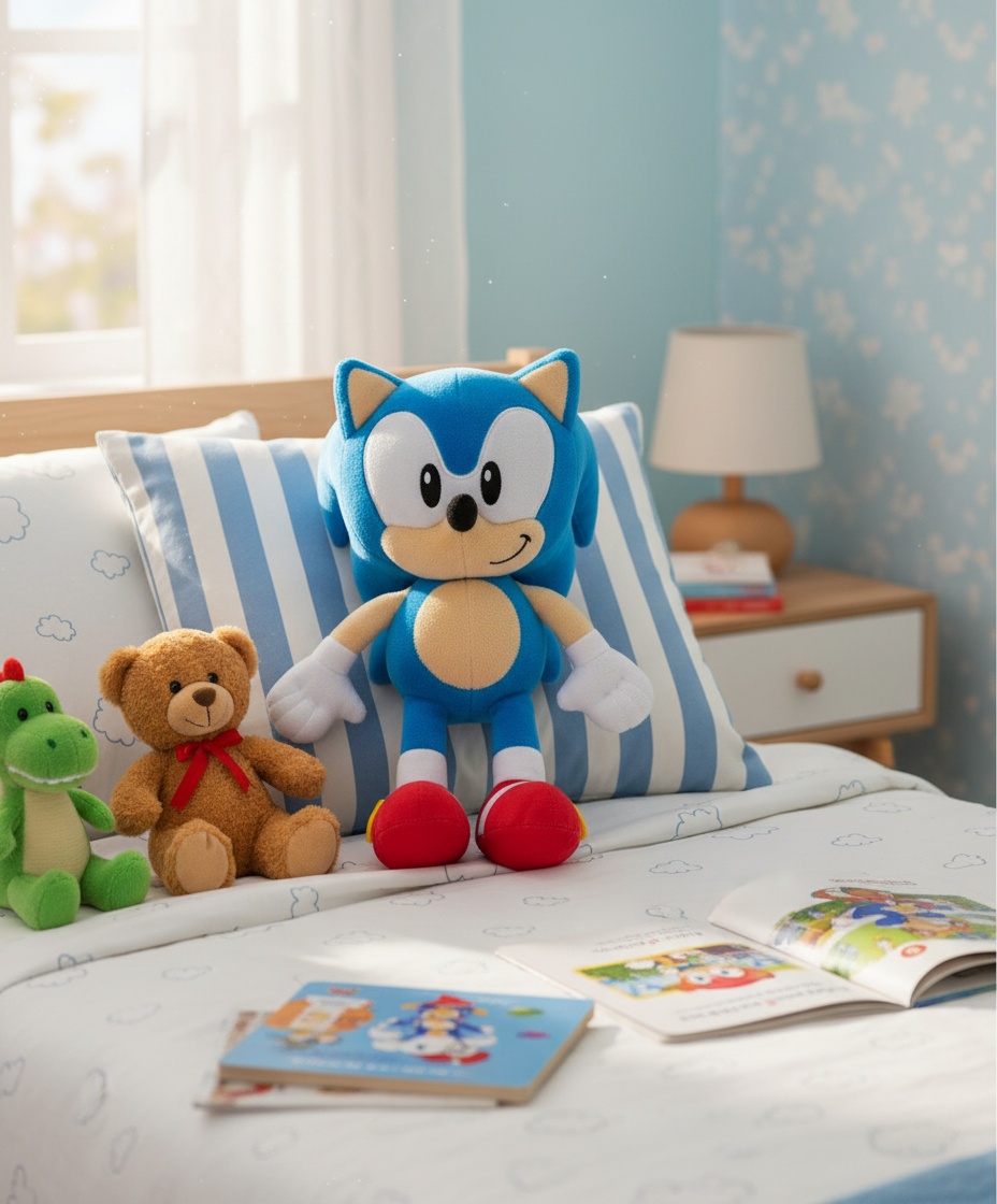 Bamsens bløde konstruktion gør, at den er særligt velegnet til de yngre fans af det blå pindsvin; der er ikke nogle hårde kanter eller hjørner at komme til skade på.