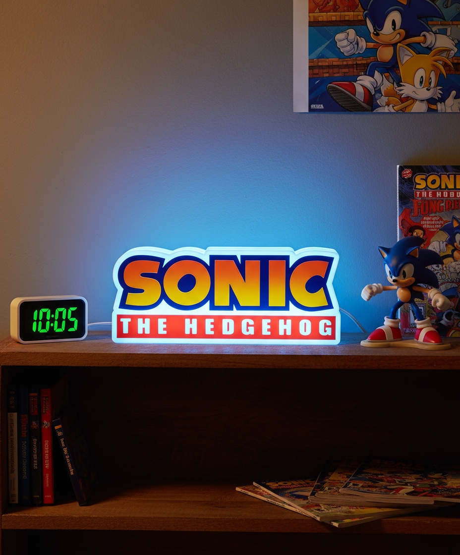 Sonic the Hedgehog Led Logo Lamp er lavet af materialer af høj kvalitet og er ekstremt holdbar. Den er også meget nem at betjene og kræver 3 aaa batterier. Lampen er et godt natlys eller læselys til dit barns soveværelse. Den er også den perfekte tilføjelse til enhver Sonic-samling. Bestil din i dag!