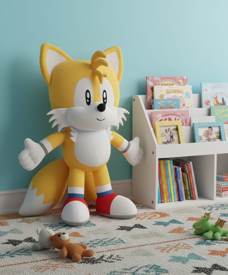 Denne 70 cm høje Tails bamse er mere end bare et stykke legetøj; det er en ven, der er klar til at deltage i eventyr og trøste ved sengetid. Med sin bløde pels og venlige udtryk vil Tails hurtigt blive en del af familien.