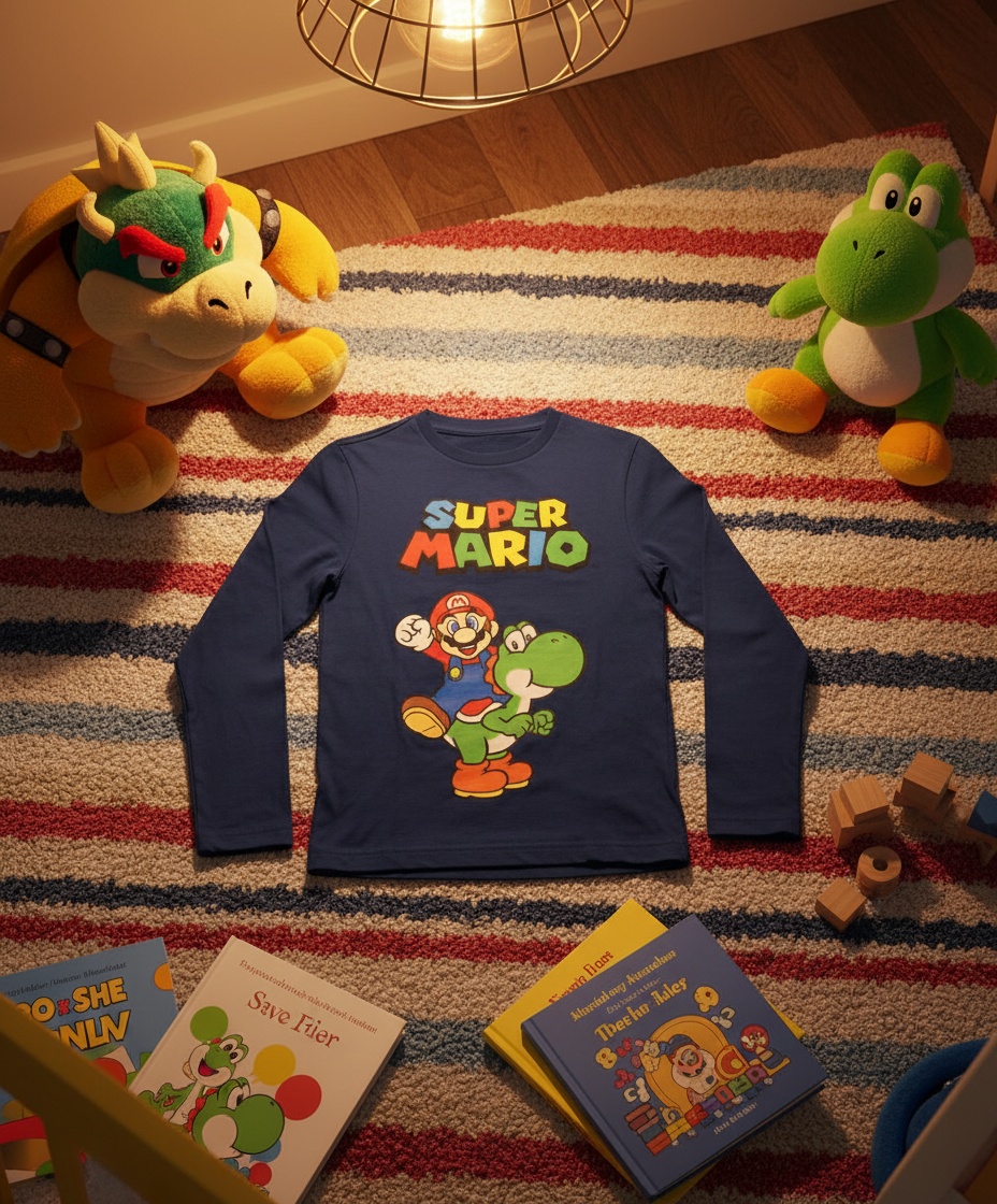 Dette T-shirt er perfekt til både leg og fritid. Dit barn kan hoppe rundt som Mario, mens det har det sjovt med sine venner, eller det kan bære det på en almindelig dag for at vise sin Mario-kærlighed.