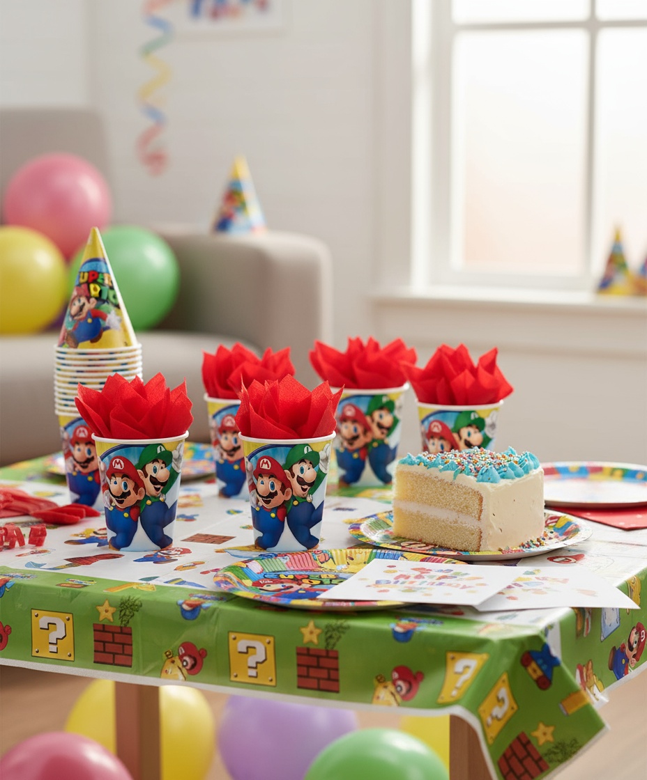 Når du har valgt vores Super Mario papkrus, kan du nemt kombinere dem med andre Super Mario festartikler som balloner, servietter, borddug og fødselsdagshatte. Sammen skaber de en gennemført temafest, hvor alle detaljer spiller sammen og gør festen uforglemmelig. Vores fødselsdagspynt hjælper med at forvandle ethvert rum til en festlig oase, der vil blive husket længe efter festen er slut.