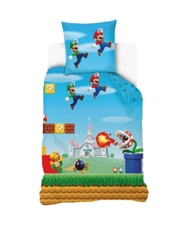 Er dit barn vild med Super Mario? Forestil dig glæden, når sengetid pludselig bliver et eventyr! Med dette Super Mario sengetøj – Level, bliver soveværelset transformeret til en del af Marios verden. Sengetøjet viser Mario i fuld fart, klar til at springe fra platform til platform, omgivet af de velkendte klodser og farver fra spillet. Dette er den perfekte fødselsdagsgave til den lille gamer.