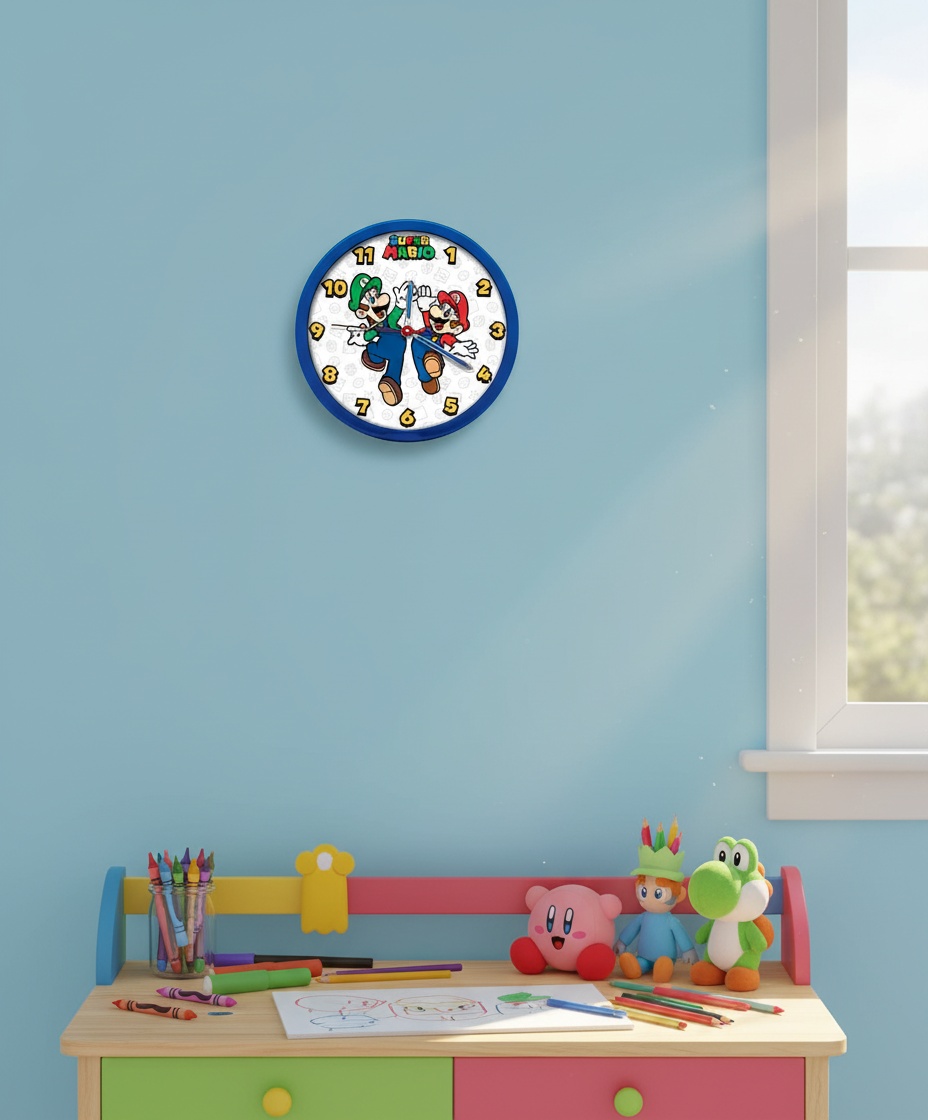 Fyld dit barns værelse med eventyr og sjov med vores Super Mario vægur. Dette ur er mere end bare en måde at holde styr på tiden, det er et vindue til Super Mario’s verden. Dit barn kan fantasere om at løbe gennem niveauer og redde prinsessen, hver gang de ser på uret. Skab minder med dette unikke Super Mario legetøj, og lad dit barns fantasi få frit løb.